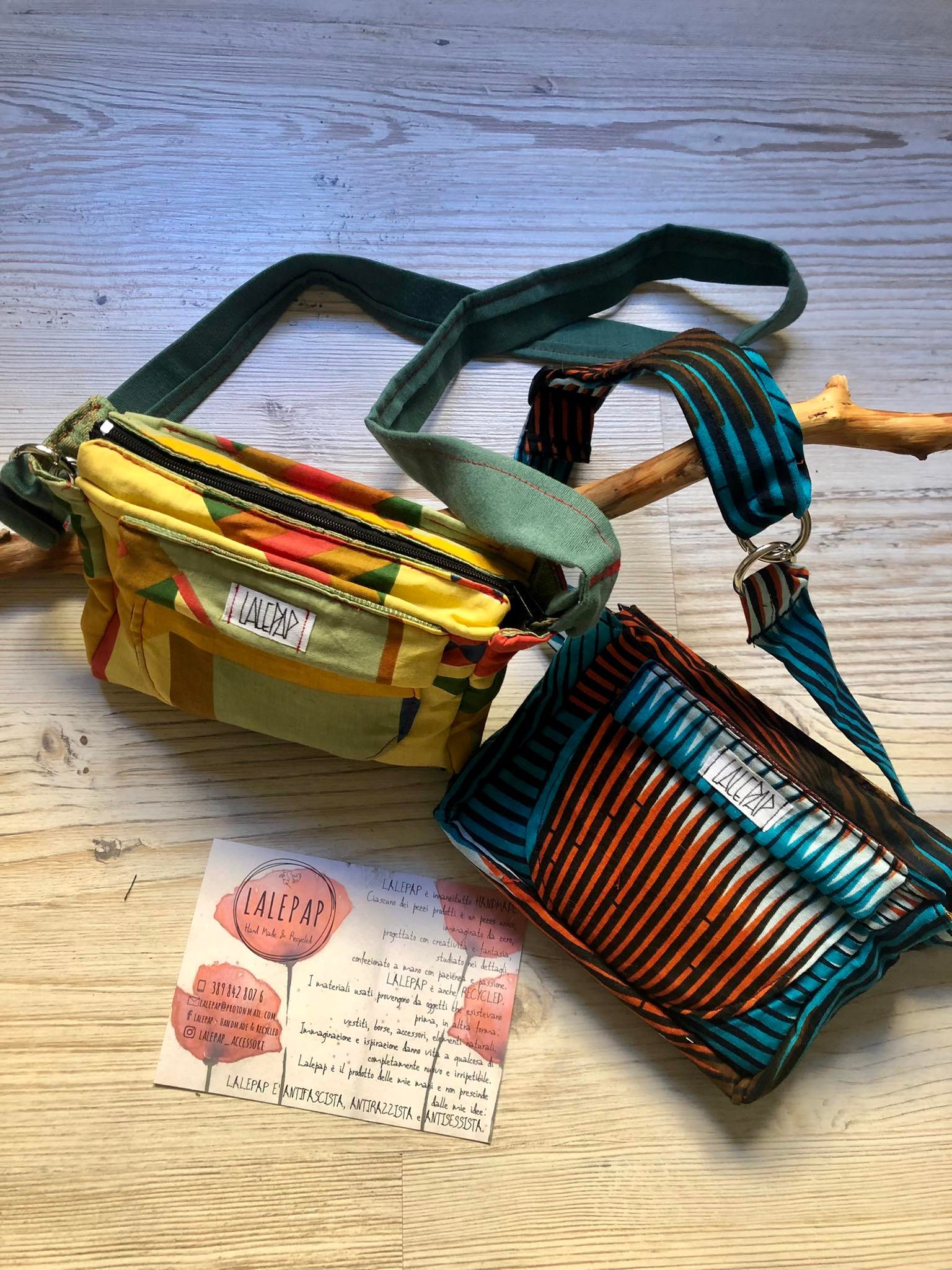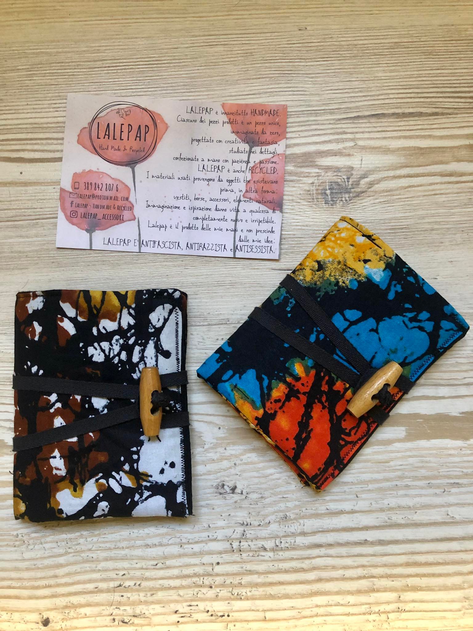 Lalepap – Handmade & Recycled è un progetto che unisce la passione per il cucito e l’interesse verso le tematiche ambientali. L’idea alla base del progetto è di creare accessori, gioielli e oggetti utili usando stoffe e materiali di riciclo: vecchi vestiti, pezzi di stoffa avanzati in laboratori teatrali, vecchie lenzuola, confezioni in tetrapak, plastica, carta e altri materiali che normalmente verrebbero buttati diventano degli accessori unici. Gli accessori che nascono da questa forma di riciclo sono astucci, portatabacchi, portamonete, piccole borse, marsupi, fasce per capelli e gioielli.