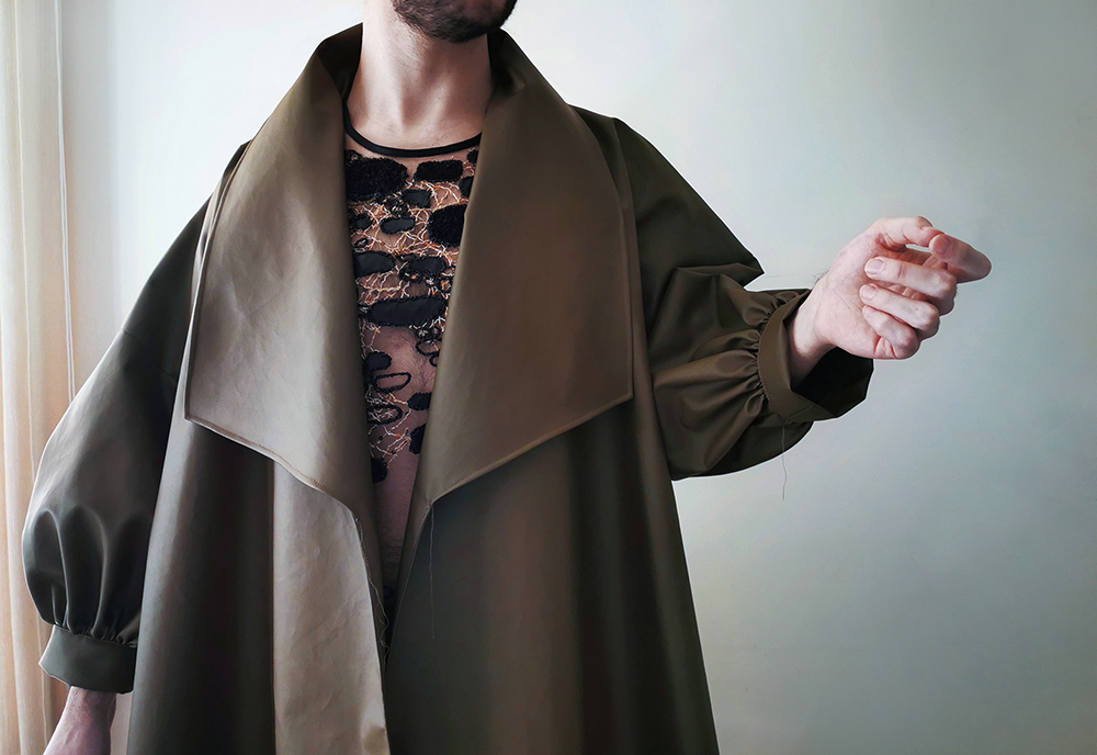 I capispalla dalla linea comoda e portabile, giocano con le lunghezze, e sono stati realizzati per adattarsi alle diverse fisicità, come il cappotto-accappatoio oversize, in lana di Hermes, che presenta un motivo decorativo floreale e accompagna morbidamente il corpo, o il trench-coat in tessuto spalmato verde oliva, con le maniche a palloncino ¾ lungo al ginocchio, dal design chic e composto.