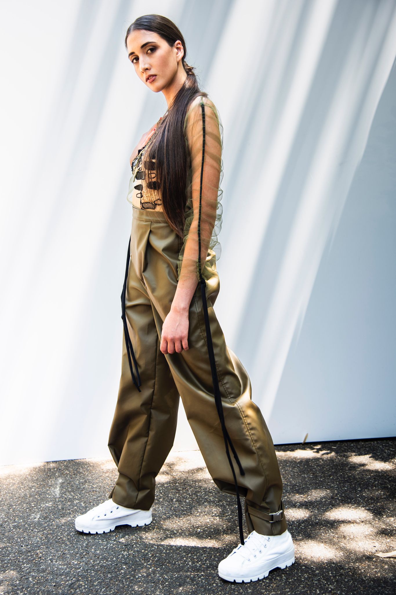 I pantaloni in ecopelle sono la vera innovazione estetica, abolite le zyp, lasciano il posto a moschettoni in acciaio cromato, per un look dinamico, confortevole e pratico.