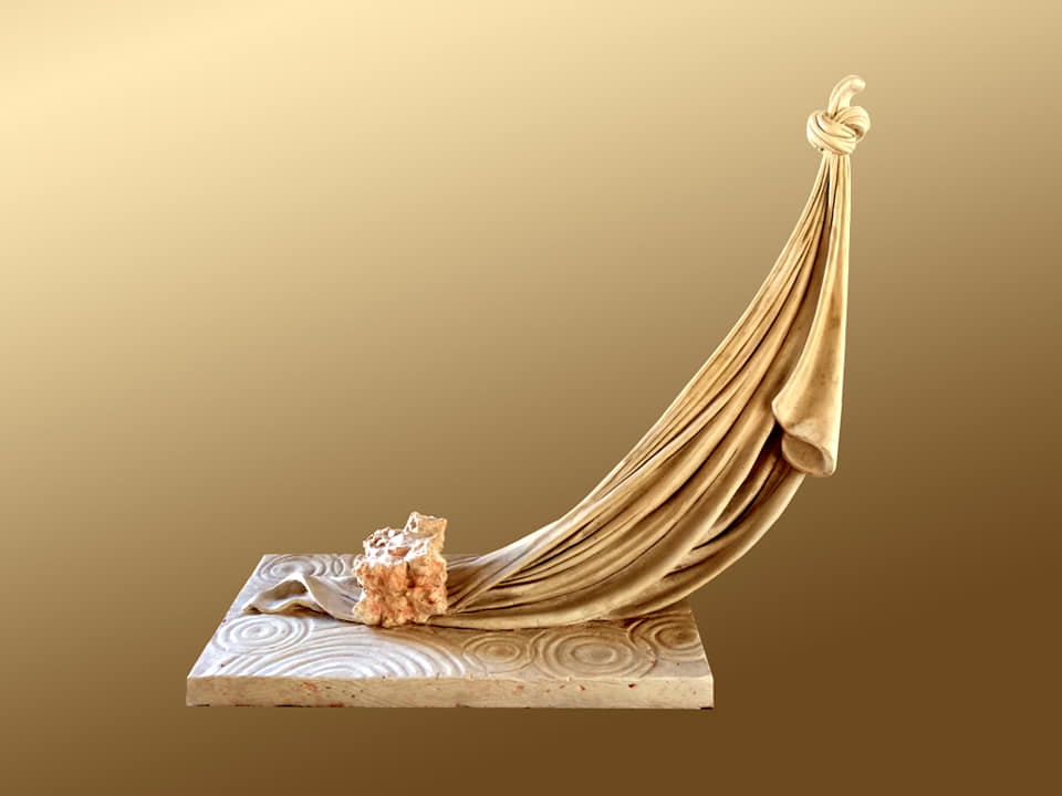 TITOLO : PROGRESSIONE DELLA RAGIONE Una suggestione immaginaria di dinamismi ed energie, che attraversano lo spazio e il tempo, divengono, asse d’equilibrio tra arcaico e futuro. Una prospettiva di un pensiero in continuo movimento, che dispiega le sue energie in modo diffuso ma libero nello spazio. II tutto rimanda ad una totalità esterna, una totalità di un ordine che trova il proprio orientamento nella combinazione di un materiale duro, con la contingenza dello spazio. Una manifestazione della ragione e del pensiero, strutturalmente aperta, che si riferisce a un tutto collettivo, che da luogo ad un spazio aereo.