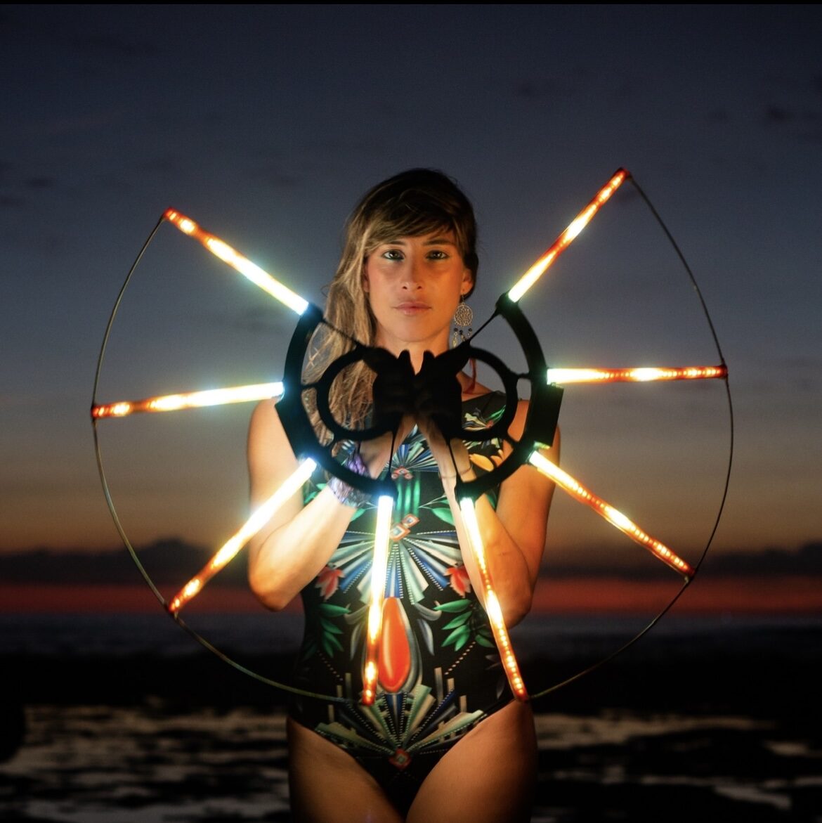 Francesca è danzatrice professionista e performer con hula hoop e ventagli sia di fuoco che a led.
