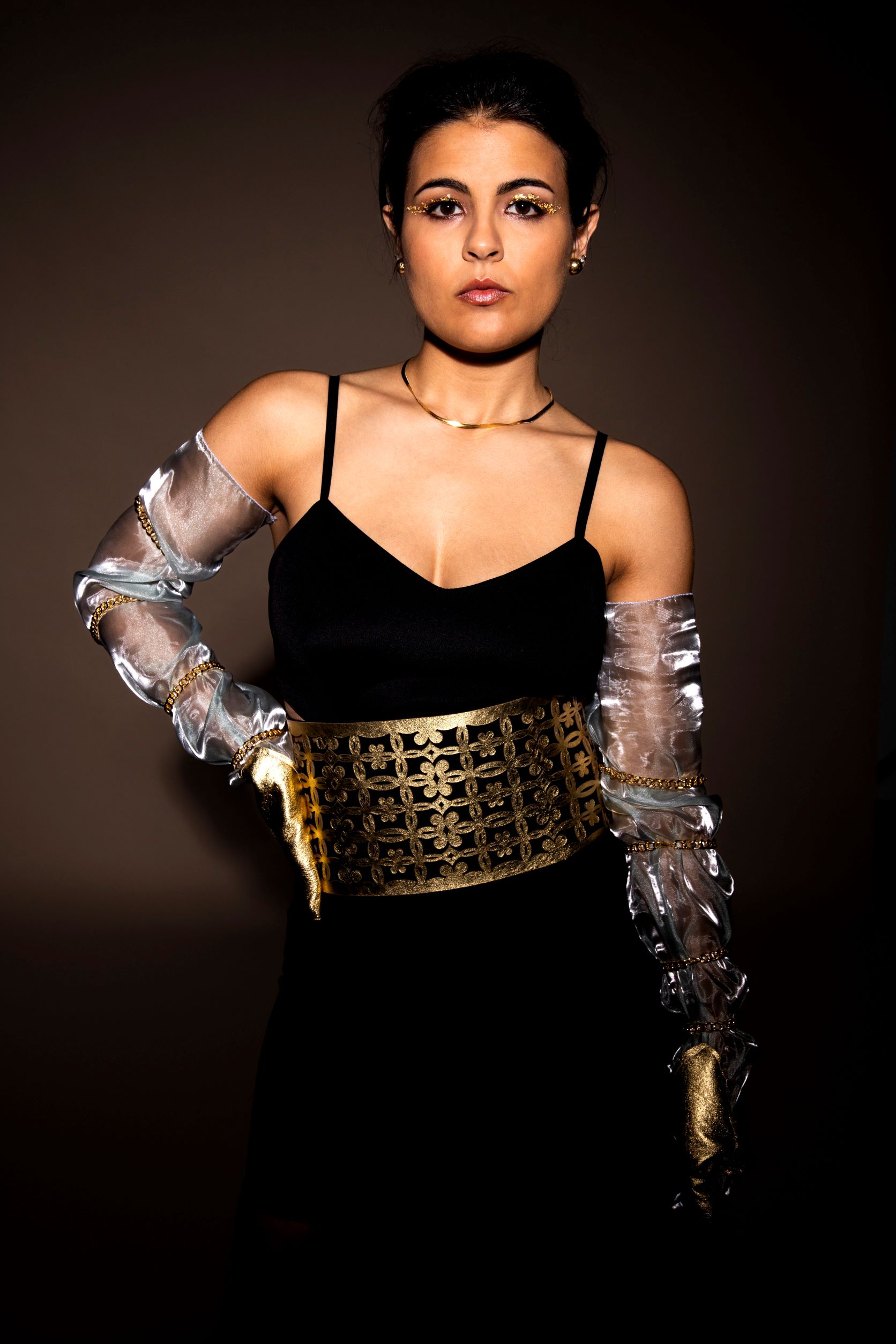 Veli e trasparenze su guanteria e calzature infondono una sensualità che evoca una donna seducente, forte e dominatrice.