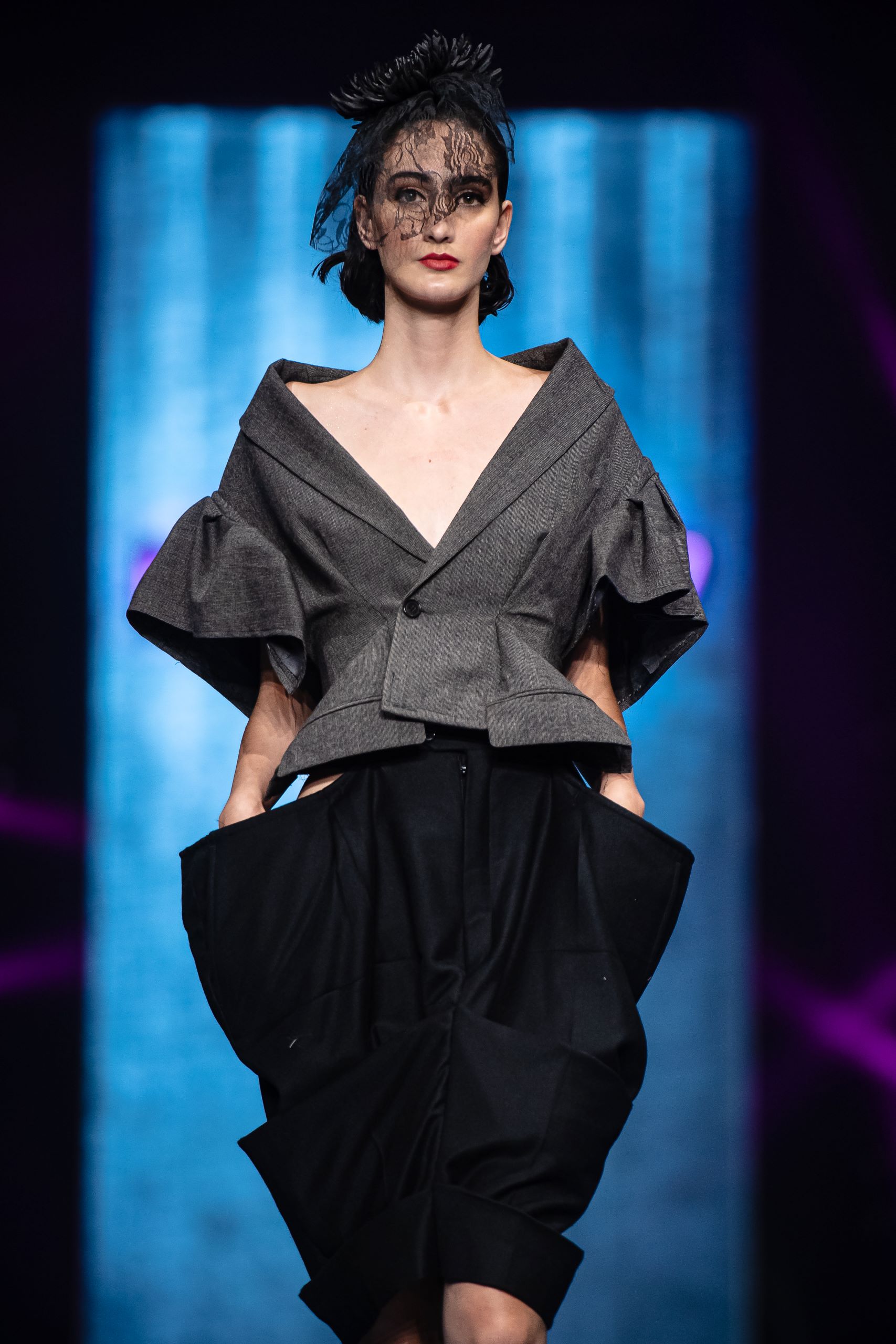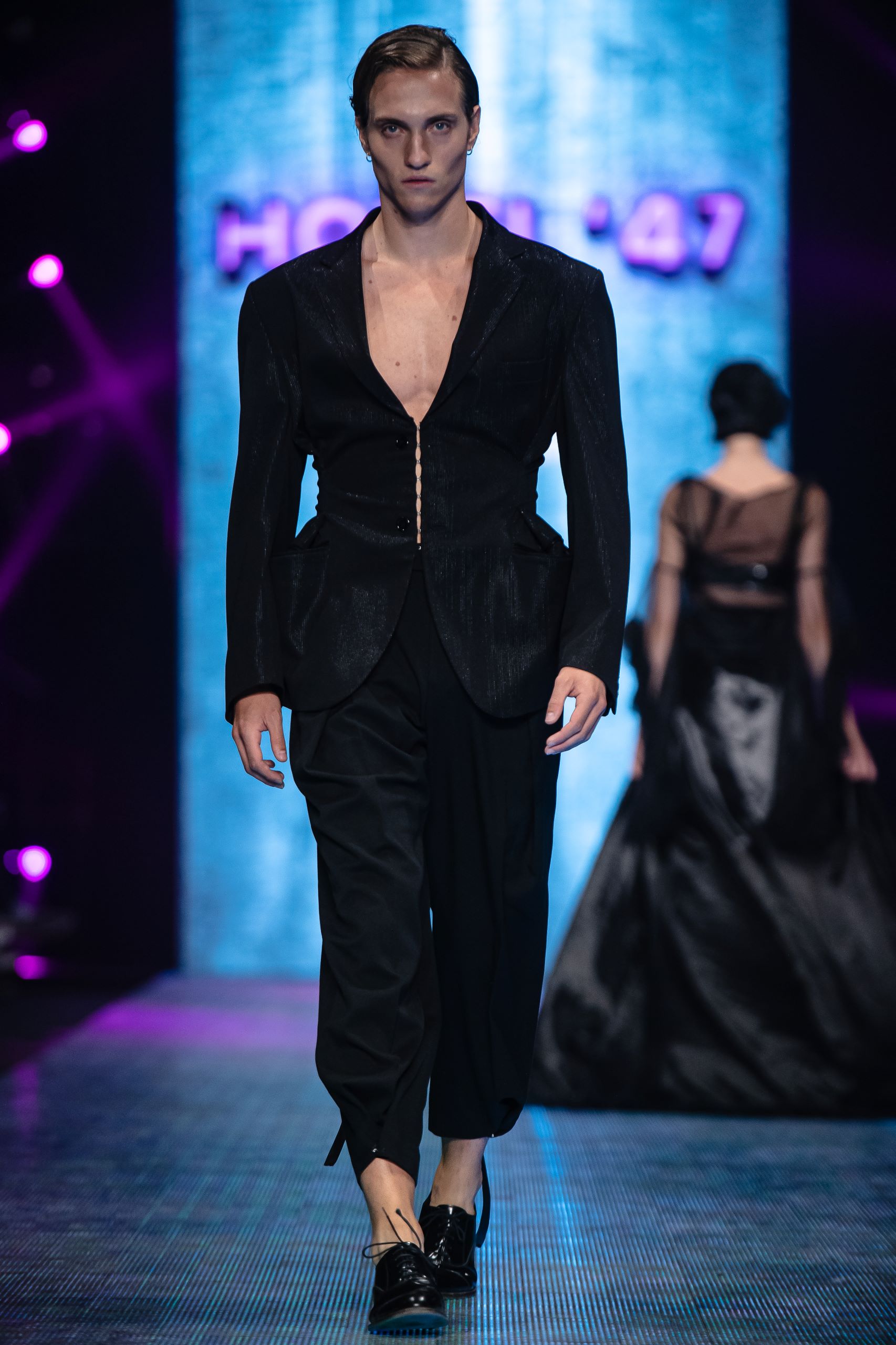 Leonardo Marinelli in arte Melankoli, Fashion Designer. Talento attivo dal 2019 sulle passerelle della Milano Fashion Week ed Altaroma. Selezionato per l’innovazione e l’impatto scenografico dei suoi capi, s’ispira all’immaginario ludico-grottesco di Tim Burton e all’universo visionario di Alexander McQueen.