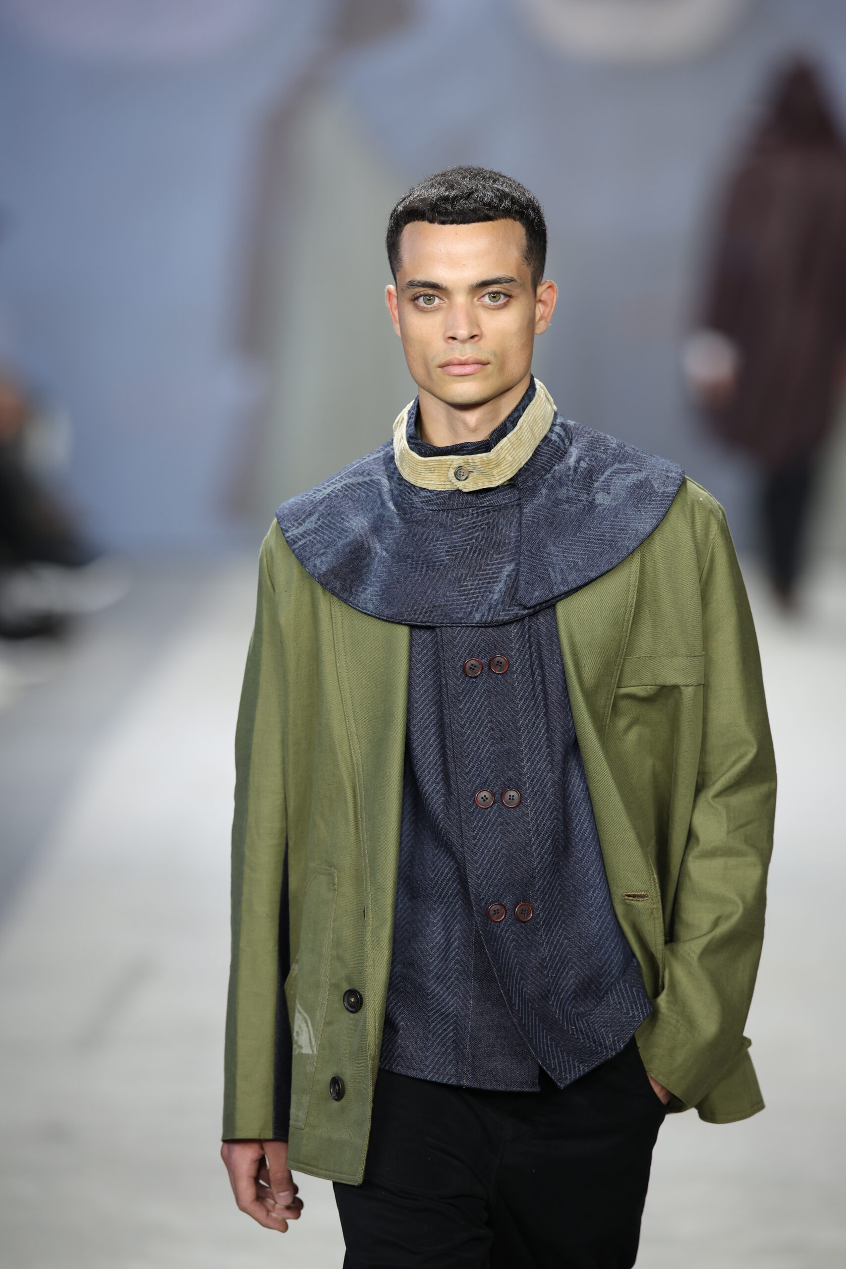 “Avete ragione tutti” ha origine dall’amore per la musica Indie, dalla spensieratezza e dalla libertà dei concerti, nonché dal desiderio di riscoprire un passato che continua a influenzarci. La musica è sempre stata un riflesso della società e il modo più diretto di affrontare temi sociali. Citando la canzone “Piccolo Cuore” di Mobrici ft. Brunori Sas, con il verso “non vuoi deluderli, non vuoi deluderti”, emerge chiaramente la volontà intrinseca dell’individuo di rappresentare il meglio di sé e la necessità di compiacere costantemente gli altri. In psicologia, questo comportamento è identificato come “people pleaser”; ciò si traduce nella modifica del proprio carattere e della personalità in base all’interlocutore, a volte a scapito della genuinità delle relazioni sincere. Questa collezione intende criticare tale atteggiamento, sottolineando l’importanza di essere autentici senza la necessità di apparire con capi senza tempo. In un’epoca dominata dalla nostalgia e dalla difficoltà nel concepire il futuro, è cruciale aggrapparsi alle tendenze del passato. Il percorso di ricerca ha delineato una intersezione tra stile militare ed eleganza maschile, dove la moda militare, con la sua funzionalità e robustezza, si fonde armoniosamente con l’eleganza intrinseca dei capi maschili, quali giacche doppiopetto, pantaloni con piega e camicie sartoriali.