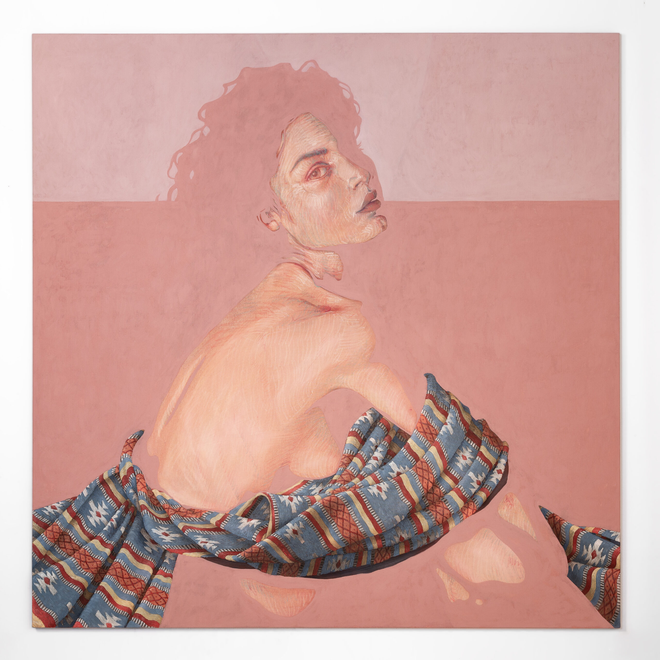 Il progetto “Corpo tessuto” indaga attraverso la pittura l’assenza e la provenienza di un corpo migrante, in continuo spostamento, per cause geopolitiche; un corpo ritrovato che nella drammaturgia contemporanea è solitamente ritratto dai medium di massa, come coperto, nascosto, celato da teli asettici e anonimi. Ecco che lo studio formale sui motivi decorativi dei tessuti dipinti, assume la valenza di statuto genetico di provenienza del corpo assente; ogni intreccio è un dna che diviene presenza concreta solamente attraverso il silenzio della pittura.