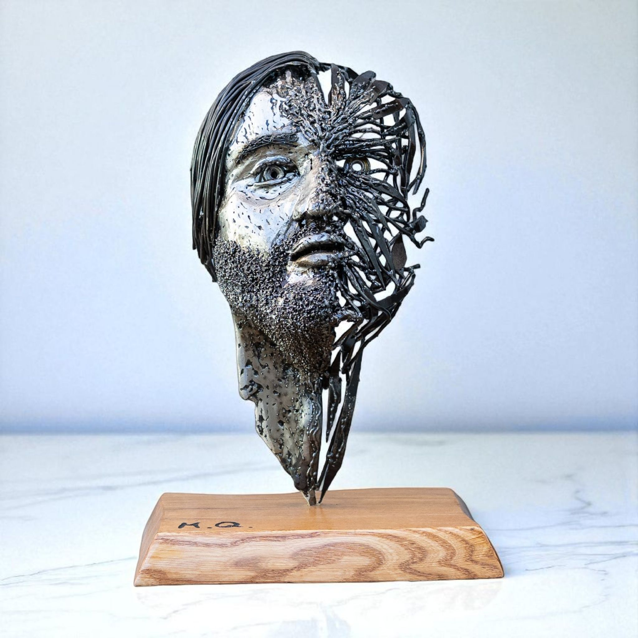 Manuel Quaresima (1996) è uno scultore autodidatta che lavora principalmente il ferro, trasformando materiali industriali e meccanici in figure umane cariche di tensione ed evocazione simbolica.